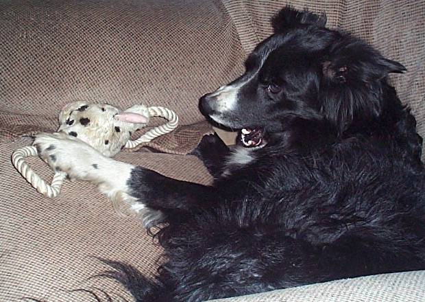 Like any dog Tippy used to have her favourite toys, below are some pictures of her enjoying play time. Her most favourite toy of all time was the tennis ball and loved nothing better than performing alsorts of acrobatics as she jumped to catch the ball, unfortunately this was never recorded as it was before the days when we aquired multi-functional digital camera's. Another favourite pass time was having a tummy rub, you should never turn down the chance of a good tummy rub because one day you won't be able to and then you will wish you had taken the time.